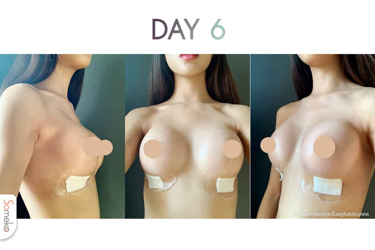 วันที่ 6 หลังเสริมหน้าอก รอไปตัดไหมพรุ่งนี้ค่ะ อ๋อ เห็นยังแปะแผลแบบนี้ อาบน้ำได้ปกติตั้งแต่วันที่ 3 แล้วน้า