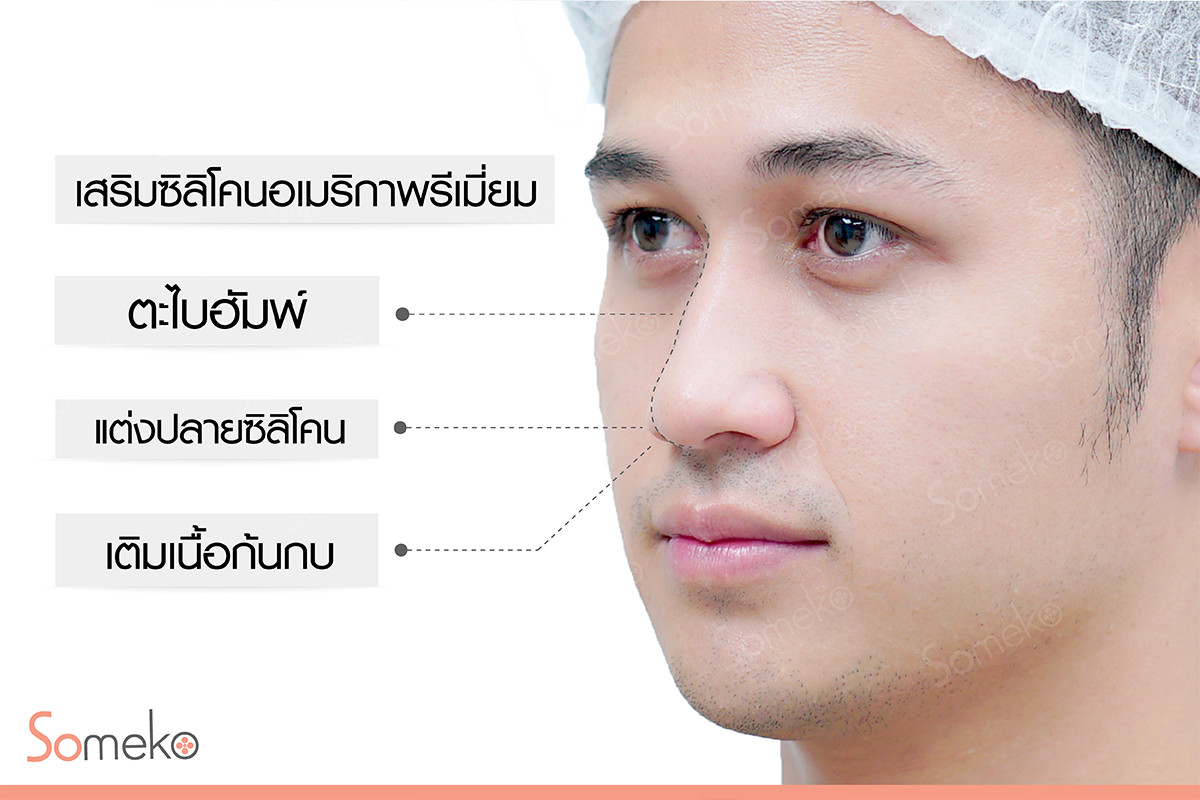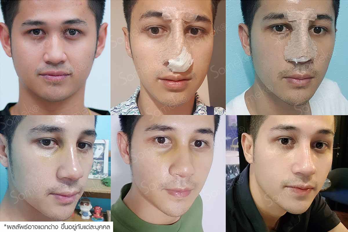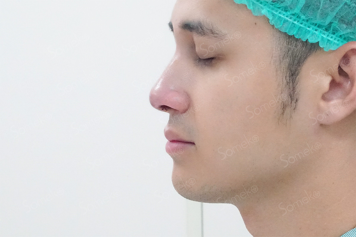ที่ผมอยากทำจมูกเพราะหลายๆคนชอบทักว่า “ถ้าทำจมูกแล้วจะดูดีขึ้น” บวกกับผมรู้สึกไม่ชอบปลายจมูกของตัวเอง พอดีเพื่อนผมเพิ่งไปเสริมจมูกที่ Someko มา เลยแนะนำให้ผมลองไปปรึกษาคุณหมอมิวที่ Someko ดูก่อน คือ ผมเป็นคนมีสันจมูกอยู่แล้ว แต่ปลายจมูกมันหักลงเลยไม่ค่อยชอบ และมีฮัมพ์ด้วยทำให้จมูกดูเป็นคลื่น หลังจากปรึกษากับคุณหมอมิวที่ SoMeko คุณหมอก็แนะนำว่า “ควรเสริมจมูกด้วยซิลิโคน ตะไบฮัมพ์ และเติมปลายจมูกด้วยเนื้อก้นกบ”